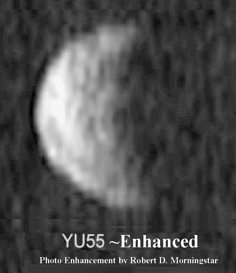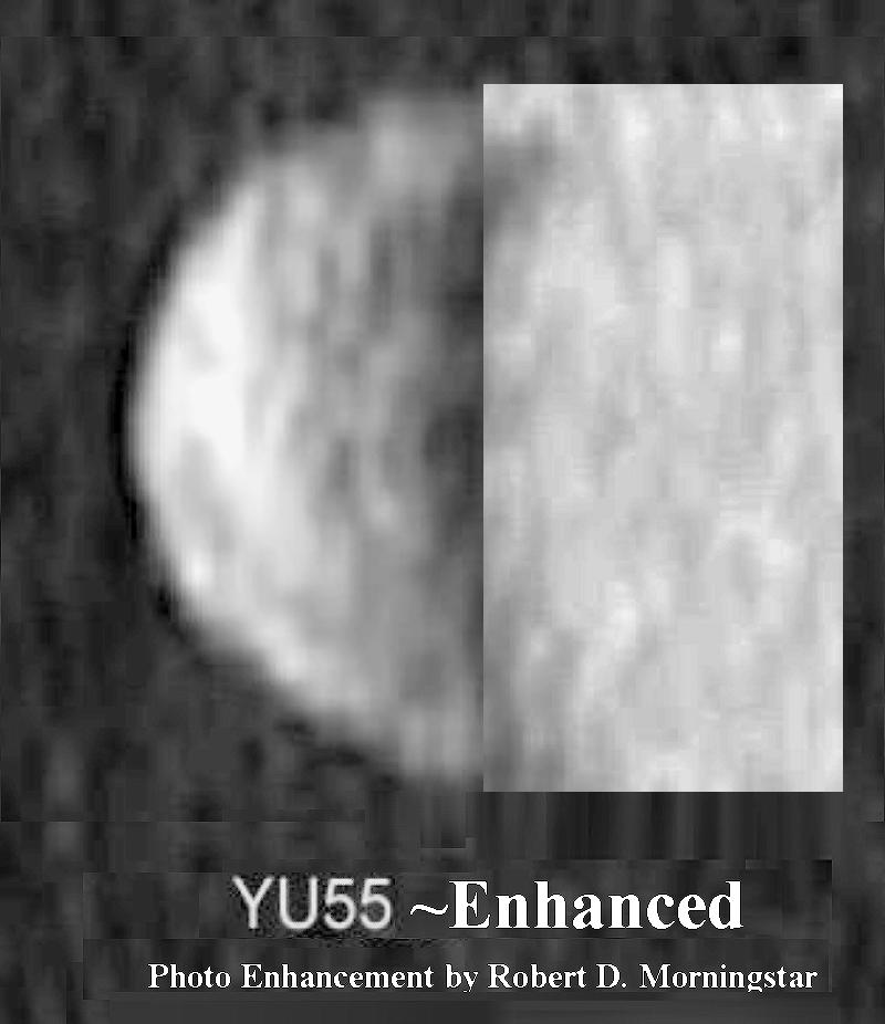 - Richard Hoagland sent out first pictures of YU-55 and it does not look anything at all like a "typical asteroid". I took the raw image (left side of first photo) and did some enhancements to improve the image.